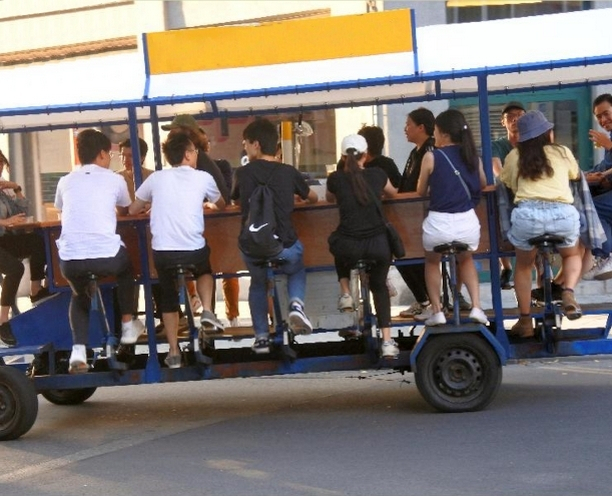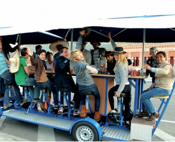 Bring up to 19 friends and enjoy a Beer Bike that’s both comfortable and easy to use (1 behind tap, 10 pedalling, 8 seats without pedals)